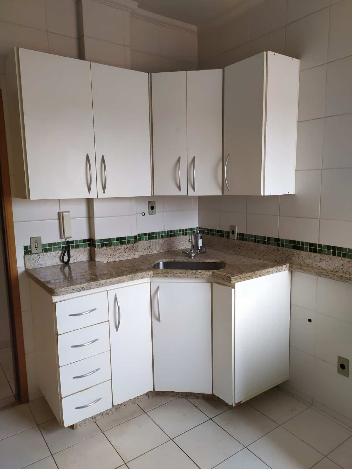 Apartamento com ótima localização, três quartos, um suíte, banheiro social, sala, cozinha com armários. Uma vaga de garagem.